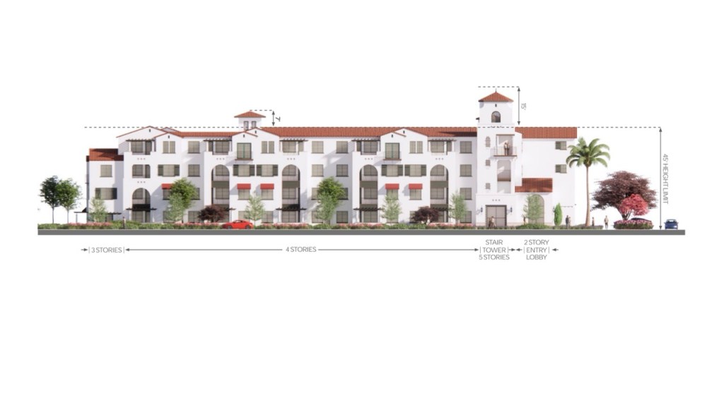 Side view of the proposed development at La Cumbre Plaza | Credit: Kennedy Wilson