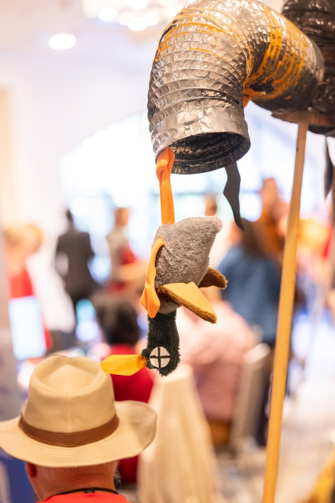 A detail of an environmental activist’s mixed-media protest sculpture at Thursday’s Coastal Commission meeting. | Credit: Ingrid Bostrom