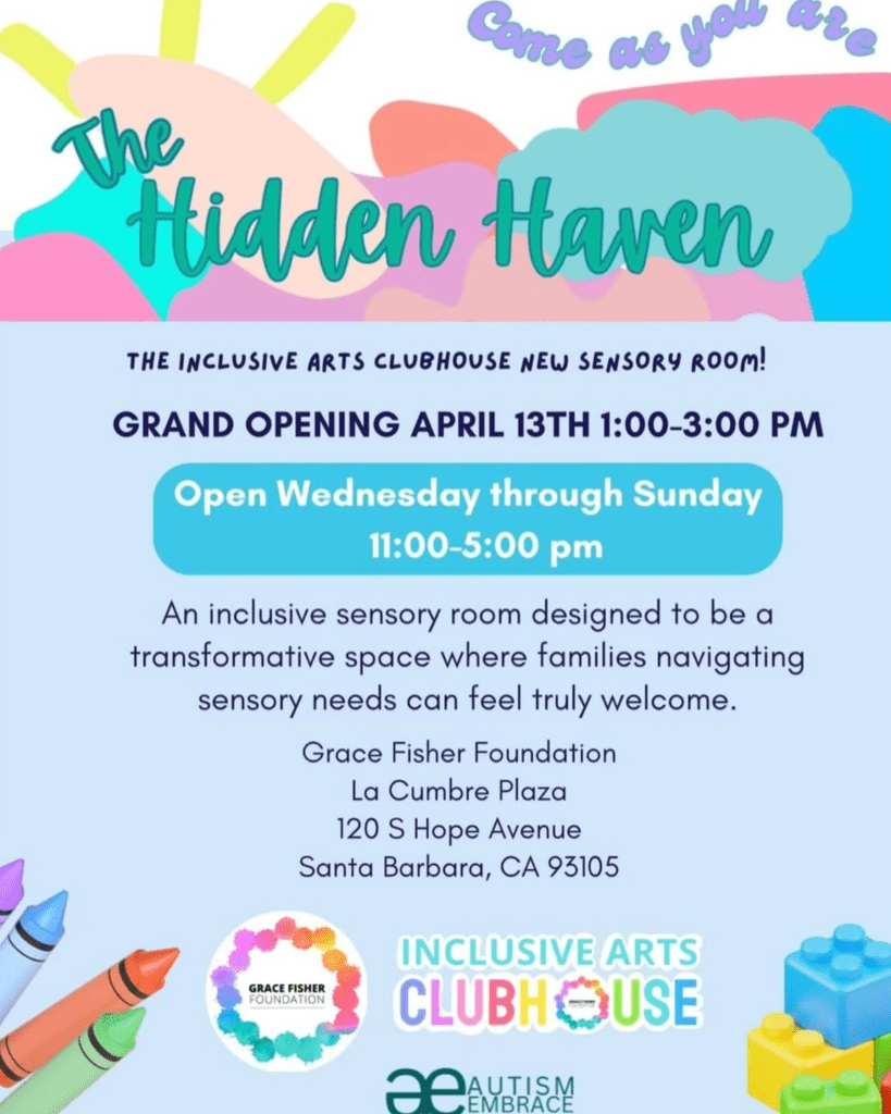 Looking for a calming retreat in Santa Barbara as a family navigating neurodivergence? Look no further than Santa Barbara’s first sensory room that will open on April 13 at The Grace Fisher Foundation’s (GFF) The Inclusive Arts Clubhouse in La Cumbre Plaza. Fisher, a true Santa Barbara leader, is opening this experience — The Hidden Haven — through the nonprofit Grace Fisher Foundation. The experience aims to help those with autism in partnership with Autism Embrace, a community-driven organization serving families, to create a safe and calm place to have fun and build community.