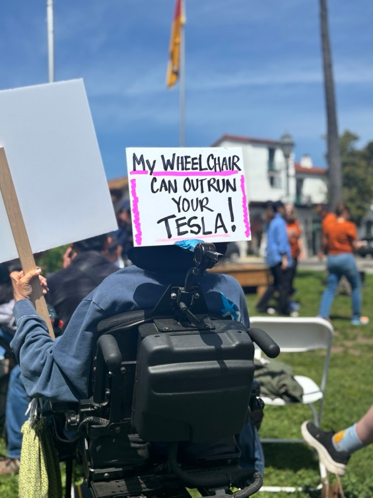 De la Guerra Plaza was full of vibrant colors and joyous energy. Dozens of people of all abilities gathered to connect, tell their stories, and speak out against the cuts. It was a familiar picture, as protests and demonstrations have become more frequent amid the Trump Administration’s gutting of federal programs and agencies.