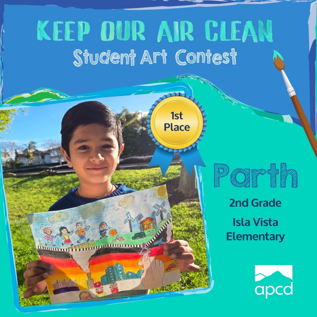 “We were excited, and motivated, to receive so many submissions from students all around Santa Barbara County, and selecting the winners was not an easy decision,” said Aeron Arlin Genet, APCD’s Executive Director. “These kids’ art showcased their creativity, positivity, and understanding of simple steps we can all take to keep our air clean now and into the future. We encourage all the participants to keep expressing themselves through art and caring about our air.”