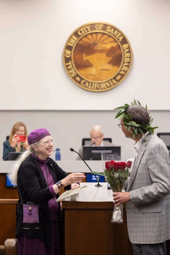 “For even if there ain’t no money in poetry, it still offers clarity as golden as California’s sunshine, as life attesting as UC’s motto, Fiat Lux,” said George Yatchisin in his first recitation as Santa Barbara Poet Laureate. Installed by the Santa Barbara City Council on Tuesday as Santa Barbara’s 11th Poet Laureate, Yatchisin, a longtime Independent contributor, joins what he called “an esteemed League of Laureates” that includes his most recent predecessor Melinda Palacio, as well as Emma Trelles, Laure-Anne Bosselaar, Enid Osborn, Sojourner Kincaid Rolle, Chryss Yost (who is married to Yatchisin), Paul Willis, David Starkey, Perie Longo, and Barry Spacks.