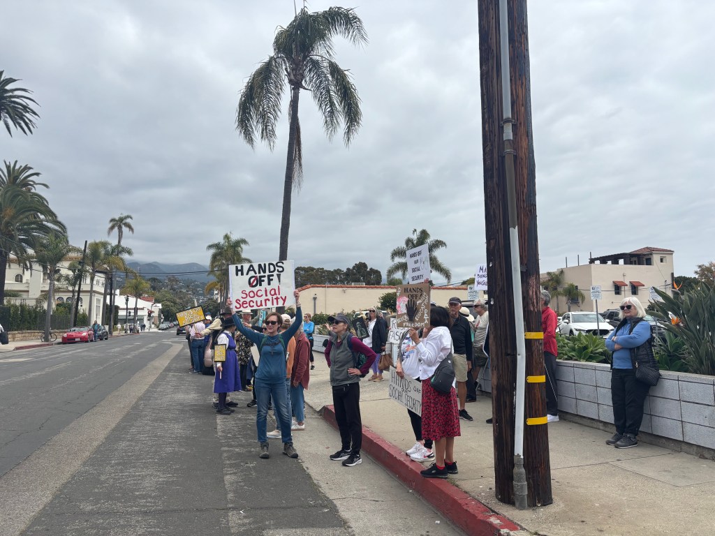 Hundreds of people gathered on West Figueroa Street on Thursday to protest the Trump administration’s cuts to many Santa Barbara seniors’ “lifeline”: social security.
