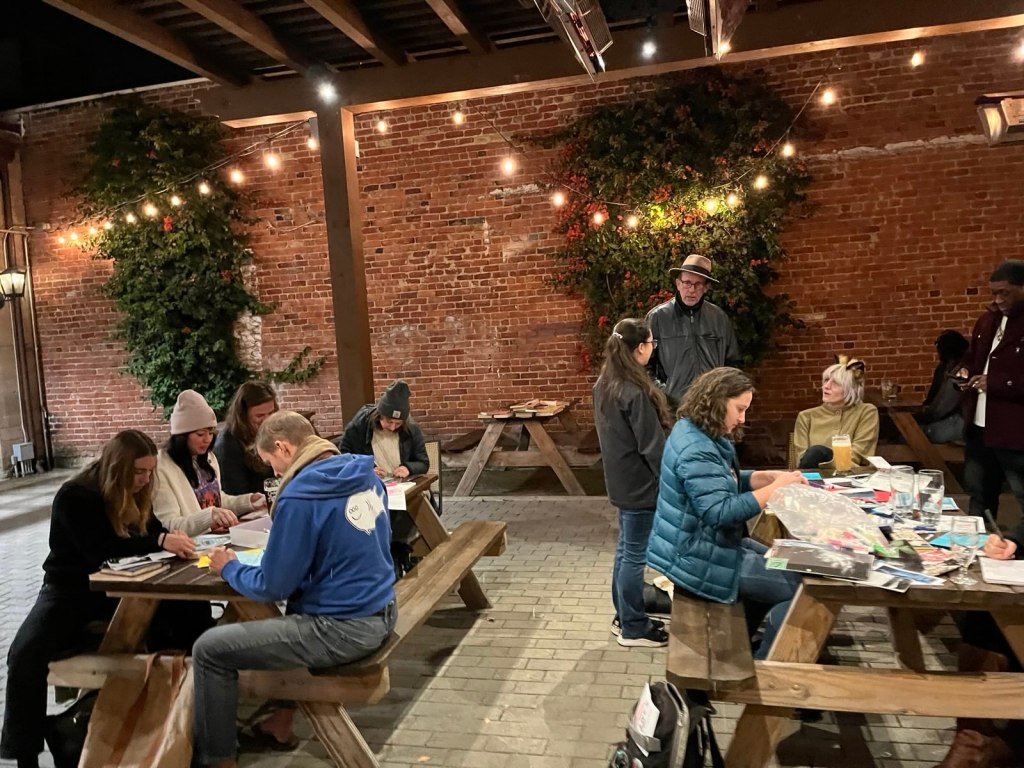 They meet promptly on the second Monday of every month at Casa Agria, a brewery on Lower State Street, in the back of Kim’s Service Department. Everybody is welcome; you don’t have to be a writer to join. In other words, Fancher said, nobody is talking about their publications or their accolades. “Nothing we do has to do with the performance of being an artist; it has to do with the art.”