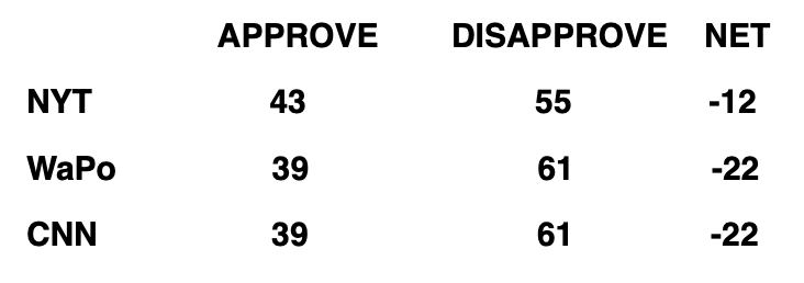 The new surveys by the Times, Washington Post, and CNN, all show Trump deeply underwater with the public: