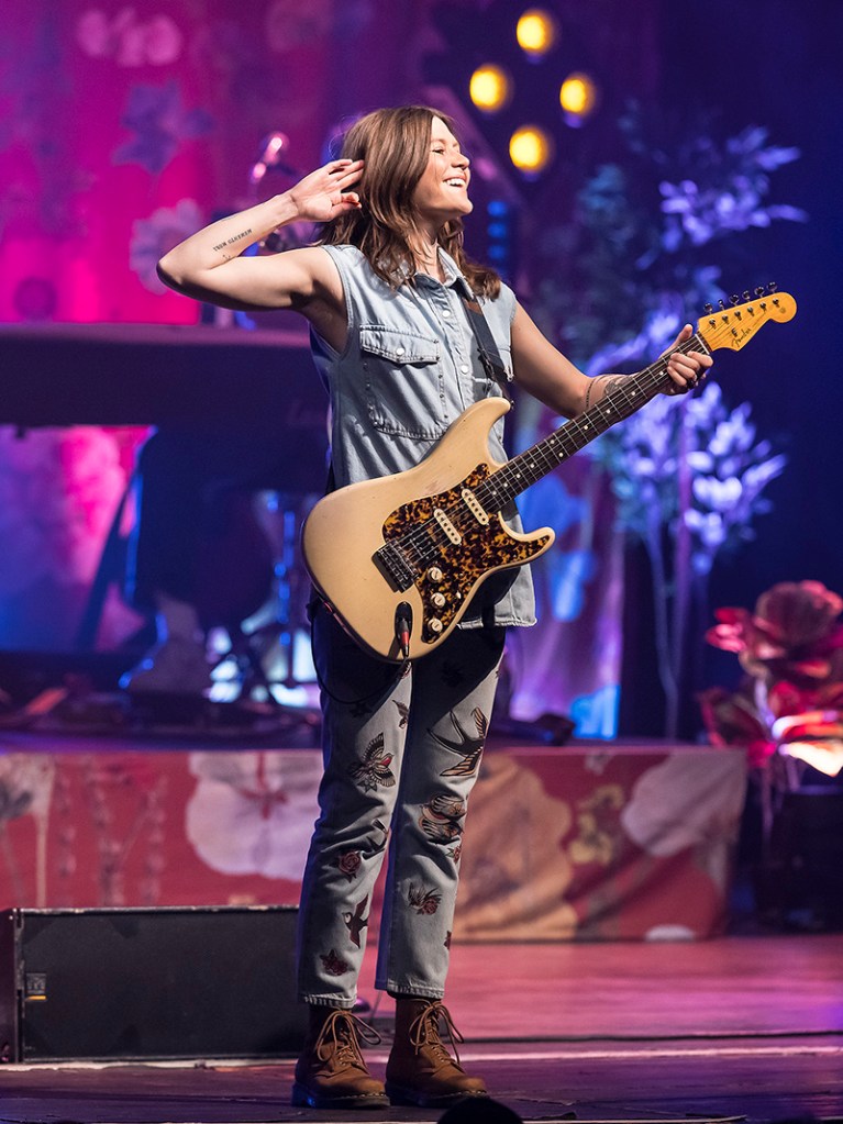Much of Sunday’s set list, though, was culled from their previous album Blood Harmony, winner of the 2024 Grammy for contemporary blues album, including “Summertime Sunset,” “Kick the Blues,” and “Southern Comfort.” Fittingly, “Comfort” kicked off a short acoustic set-let at mid-point in the show, with band members gathered around a single mic, vintage country-radio style. Megan sweetly “wo-manned” a dobro on the tunes “God Moves on the Water,” “Mad as a Hatter” and, winkingly, a gender-goosing take on John Denver’s classic “Thank God I’m a Country Boy.”