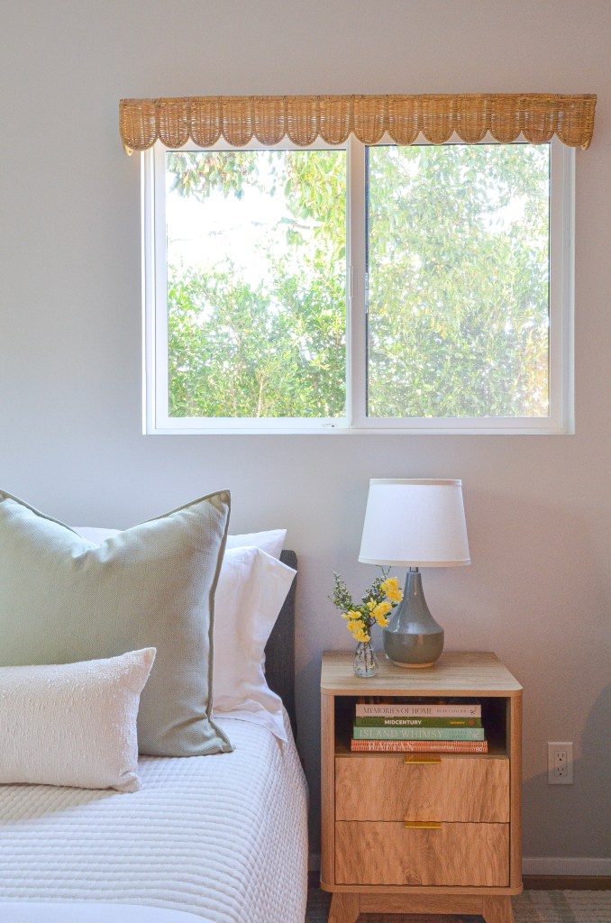 Our client already had these beautiful window treatments that added much-needed softness and texture to the far wall. We sourced the sweetest rattan pelmet as a valance over the additional window, offering more texture and playfulness. It’s easily my favorite detail in the space. A soft place to land and rest was the highest priority, making the bedding selections crucial. We went for clean and soft details, lush pillows, and natural materials, creating an inviting place to slow down and take a deep breath. Paying attention to these details when pulling together a space should always be considered. Ask yourself how you want to feel when you enter the room, and use that as your guide when making your selections.