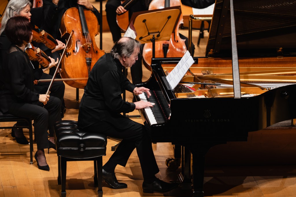 Boulez’ famous tendency for revising past work was even more critical in the concert’s opening set of pieces, selections from Notations, for orchestra and piano (played by Aimard). The four-score package opened, logically, the simple piano theme he wrote as a 20-year-old in 1945 — based on powers of 12 — leading into a later orchestral version, a slightly more elaborate solo piano theme, and the grand, longer and dense finale, Notations VII for orchestra, written in 1998 but revised in 2004, nearly 60 years after the young composer etched out its origin story.