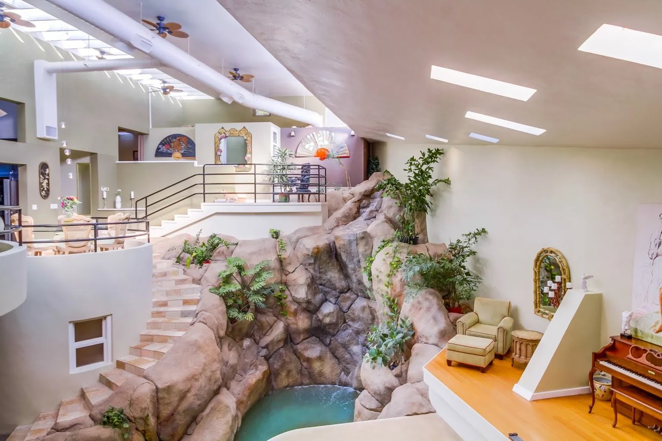 An indoor pool is incredible enough, but an indoor waterfall, too? This house has both, along with almost 40-foot ceilings, multiple mezzanines, and not one but two stages fit for pianos or other artistic expressions. Outside, lush gardens and tranquil courtyards compete with a fireside lounging area for your favorite spot to relax in San Diego’s year-round climate. Back indoors, the acoustics rival that of a concert hall, and the natural light conjures opportunities as an art gallery. Leave it to Zillow Gone Wild, they’ve found another property that almost defies the imagination.