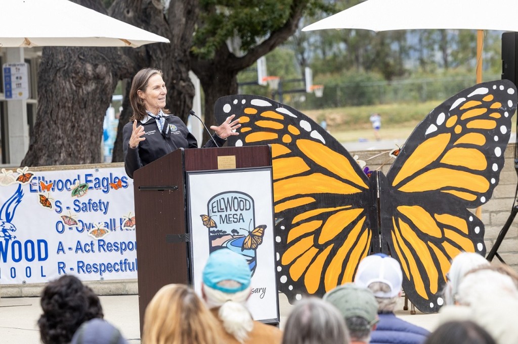 La Supervisora del 3er Distrito del Condado de Santa Bárbara, Joan Hartmann, pidió a los asistentes que reflexionaran sobre sus contribuciones a la historia de Ellwood. Ella dijo: “En aquel entonces, ¿escribiste una carta, hiciste una llamada, hablaste en una reunión? ¿Traer a tus hijos aquí, con la esperanza de que crezcan amando esta tierra? ¿Te detienes a notar una flor, una monarca, un nido de colibríes y actúas solo porque amas este lugar? Si es así, este momento, esta celebración, este día, es para ti”.