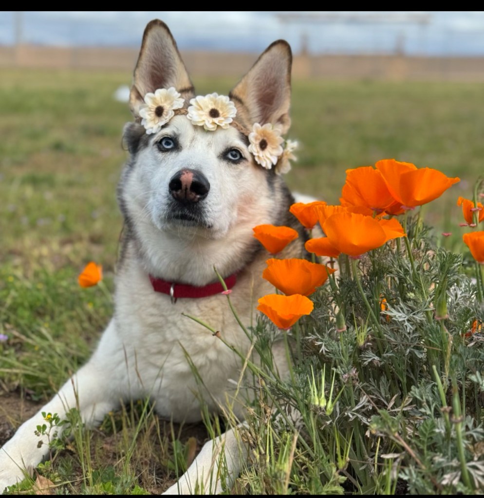 This mellow, sunshine-soaked soul is Ninja, a seven-year-old German Shepherd/Husky mix at our Santa Maria Campus. He’s got a heart full of love, a bounce in his step, and a peaceful vibe that could make even the cloudiest day feel like summer.