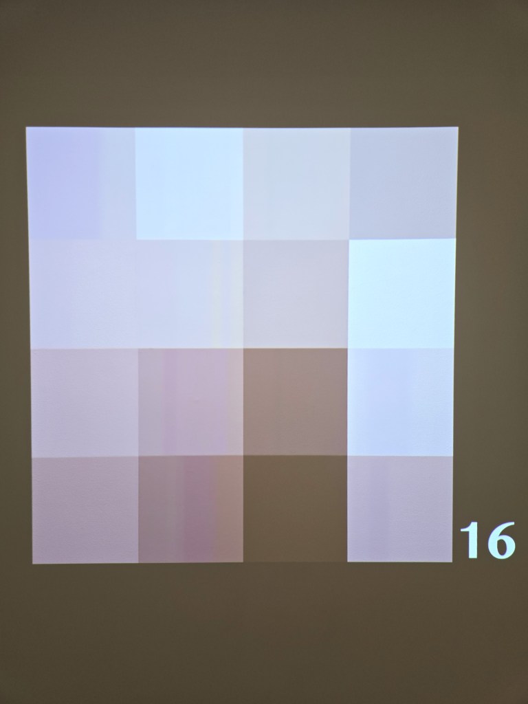 Ironically, one of the more minimalist and cool-seeming works on view is the brain teaser “Graphic Pixels,” a video projection by JD Brynn. We may find ourselves sinking into the shifting color dance of squares on the surface before learning that the title has a deeper meaning. The radical source material is a 20-second clip of the notorious — and “graphic” — porn film Deep Throat, pixelated and blown up to the point of becoming unrecognizable visual data, an abstraction dancing before our eyes.