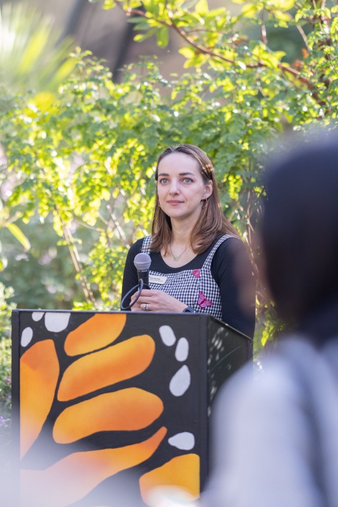 Recently voted into the top three butterfly gardens in the nation by readers of U.S.A. Today, Zsembik said, “This pavilion is important in the regard that I think butterflies are this amazing gateway insect for a lot of our guests. So many of us are frightened of bugs and insects in the world; we’re taught to not get our hands dirty, to not touch, that it’s gonna bite you, and to just be really cautious. And I think this pavilion is meant to help inspire and bring comfort only in Santa Barbara and other places in the world, we have over two dozen different butterfly species, and that’s a really rare occasion that you’re going to find that you’re not going to find out in the wild.”
