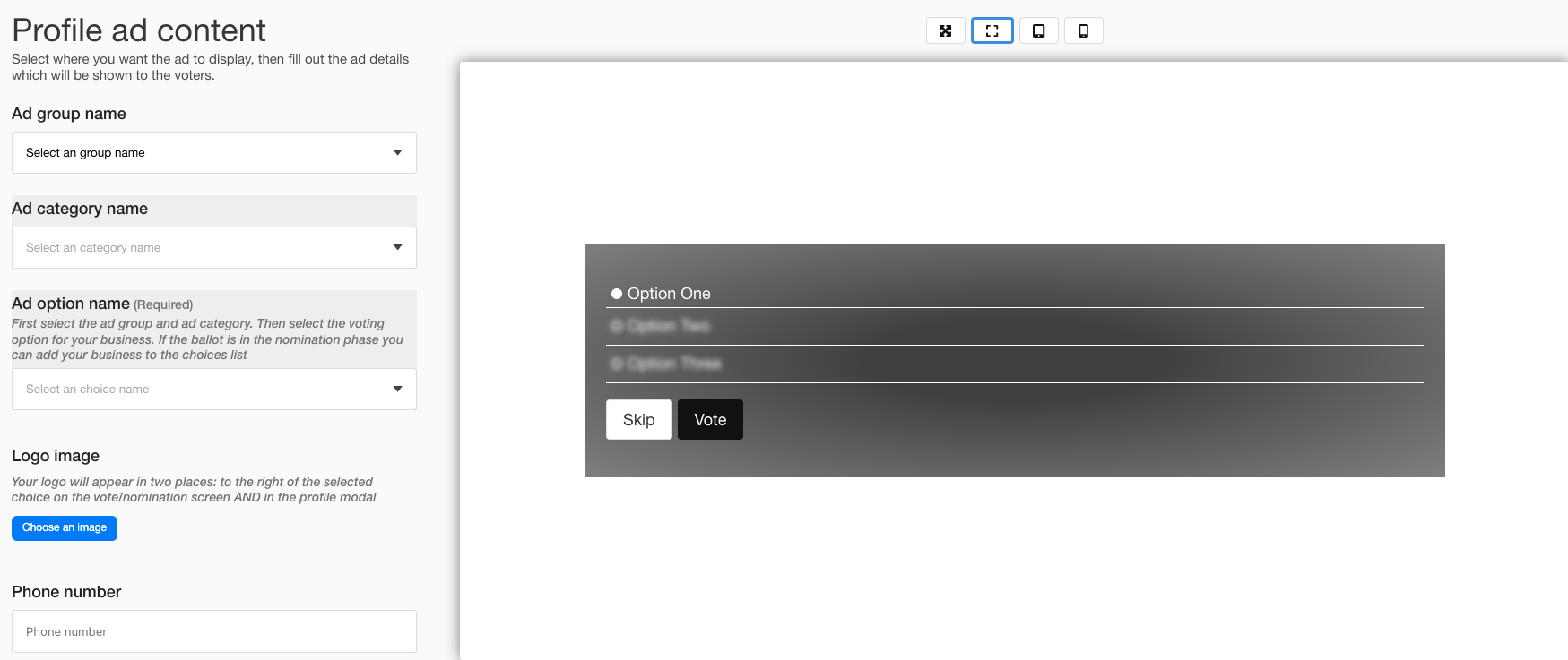 At the top right hand corner of the ballot, there is a section that says “Ad Promote.” If you are a business owner in town and would like to have your information displayed directly on our ballot, you can click on this button.
