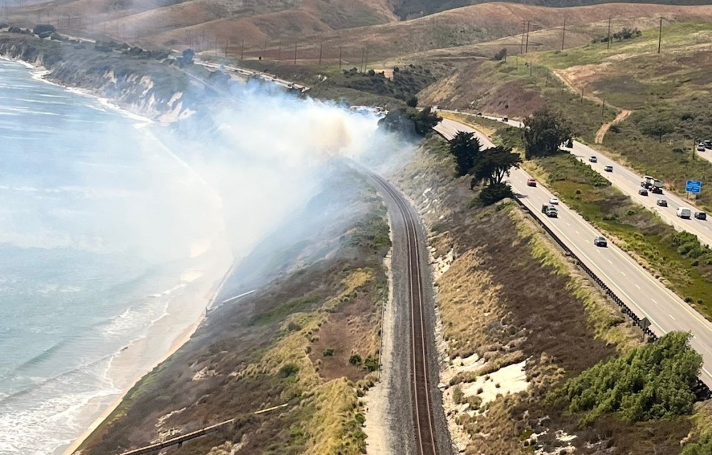 [Original Story] Two fires broke out in Gaviota along Highway 101 Tuesday afternoon, stopping train service and closing down all southbound lanes and reducing traffic to one lane on the northbound for the moment.