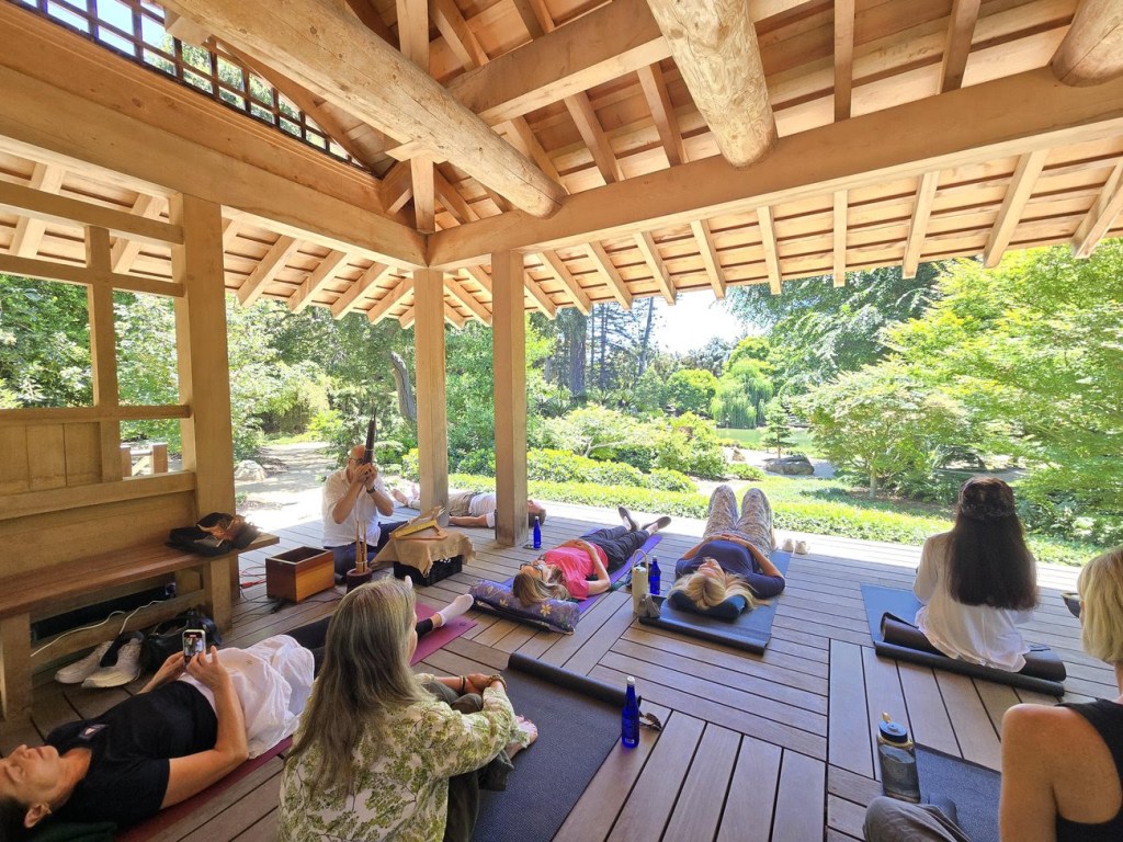 Meanwhile, a world away from the blithe mayhem of Summer Solstice doings, Montecito’s Lotusland held one of its periodic sound meditation events in the glorious Japanese Gardens — certainly one of the more peaceful locales in the 805. Last week’s hour-long program, on a “Wellbeing Wednesday” at noon, turned out to be a combo sound meditation and ethnomusicology lesson, provided by the UCSB-connected musician and scholar Fabio Rambelli, performing on the entrancing small Japanese shō, whose roots make it one of the world’s oldest instruments.