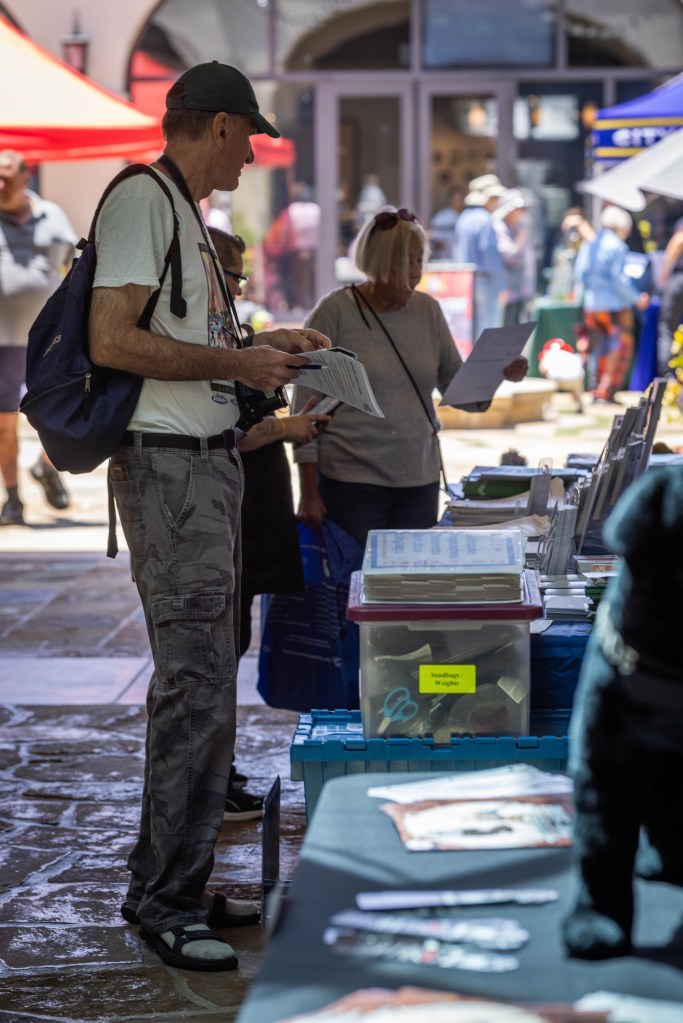 EQ-25’s Summer Solstice Parade float made an appearance, letting passers-by get up close and replicate the earthquake themselves. Parked across the roadway was a line of vintage vehicles from the early 1900s, including a replica of the famed ’20s racing car Chitty Chitty Bang Bang.