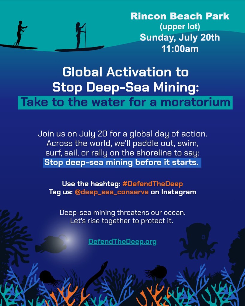 Join me July 20, 11 a.m. at Rincon Beach Park as part of the Global Activation Against Deep-Sea Mining.