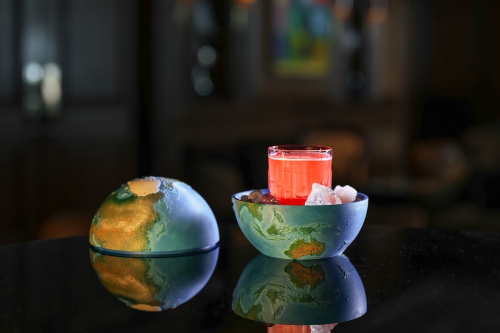 After some questions about my usual preferences, I went for the refreshing and somewhat savory side of the menu first with the Center of the Earth, a visually stunning and gustatorily satisfying cocktail made of The Lost Explorer mezcal, Dolin blanc vermouth, Chinese five-spice, watermelon, pistachio, and lime — all served in a retractable globe, surrounded with otherworldly light from within, and decorated with an assortment of crystals and mushroom figurines to represent the early elements beneath the surface. The vibrant watermelon hue of my drink added to the composition, as it was also there to represent the magma at the center of the earth.