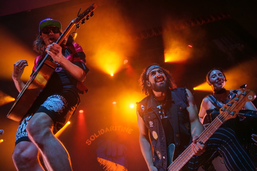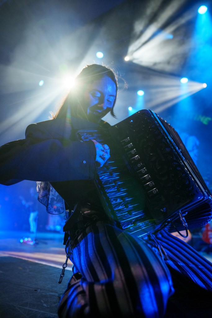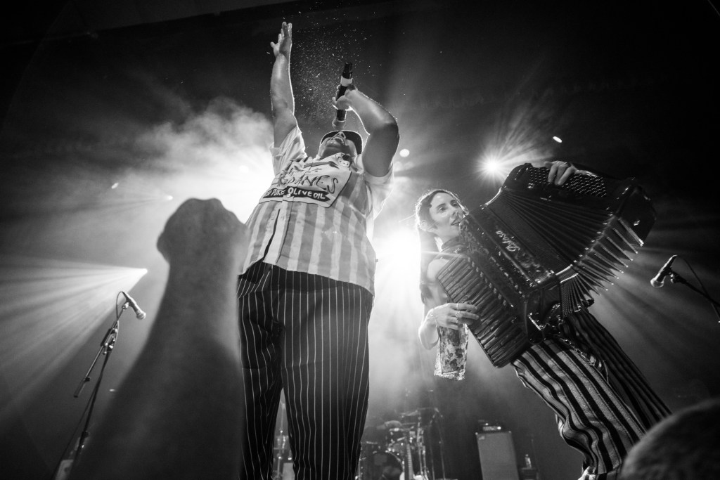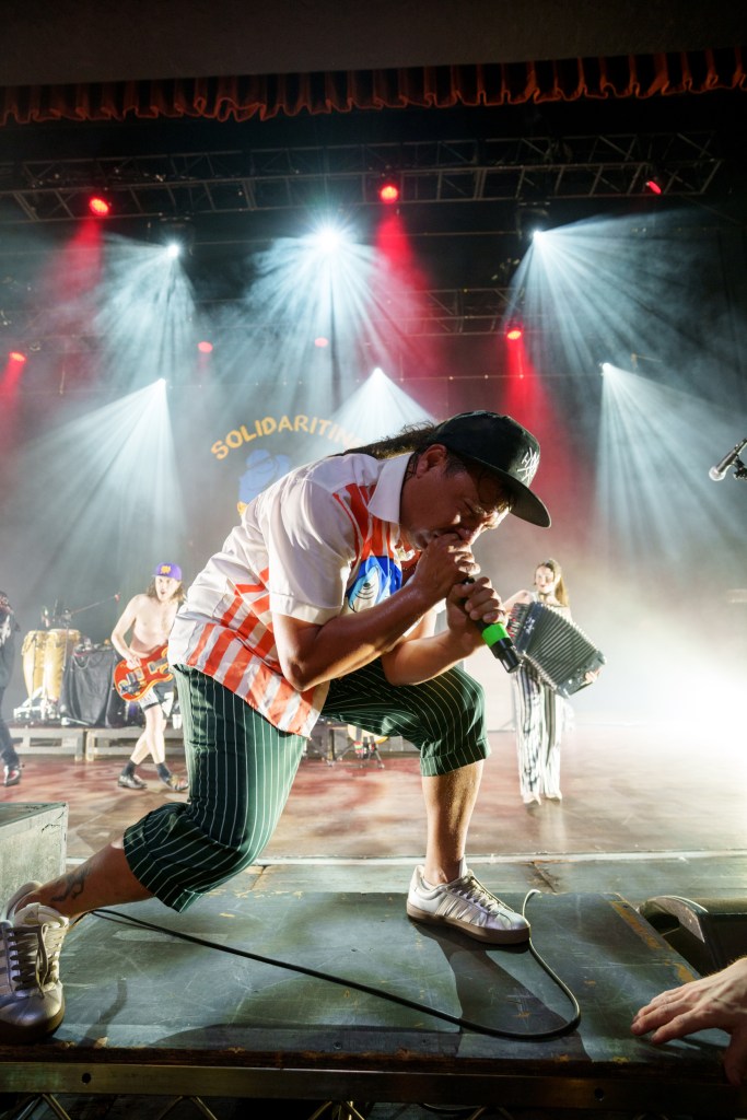 The band created a dynamic sound with multiple voices from various cultural backgrounds and a variety of instruments, including violin, accordion, and percussion. Along with Hütz on lead vocals, acoustic guitar, and percussion, the band also included Sergey Ryabtsev on violin and backing vocals, Pedro Erazo on percussion, Korey Kingston on drums and percussion, Gil Alexandre on bass and backing vocals, Erica Mancini on accordion and backing vocals, and Leo Mintek on guitar and backing vocals. Each member was essential to the overall experience that felt like a celebration of what makes all of us unique and the importance of punk rock and shared community.
