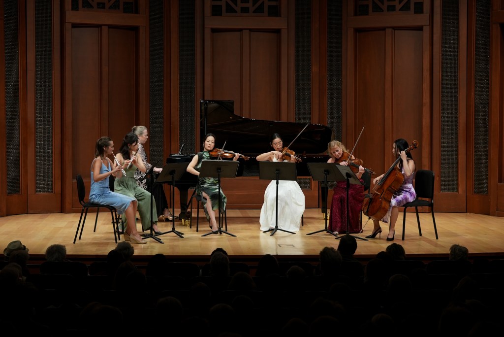 Performers for Septuor Fantaisie ou Concerto, Op. 72: Yelin Youn, Elízabeth Kleiber flutes; Helen Kim, Annie Pham violins; Cynthia Phelps viola; Esther Chae cello; Margaret McDonald piano