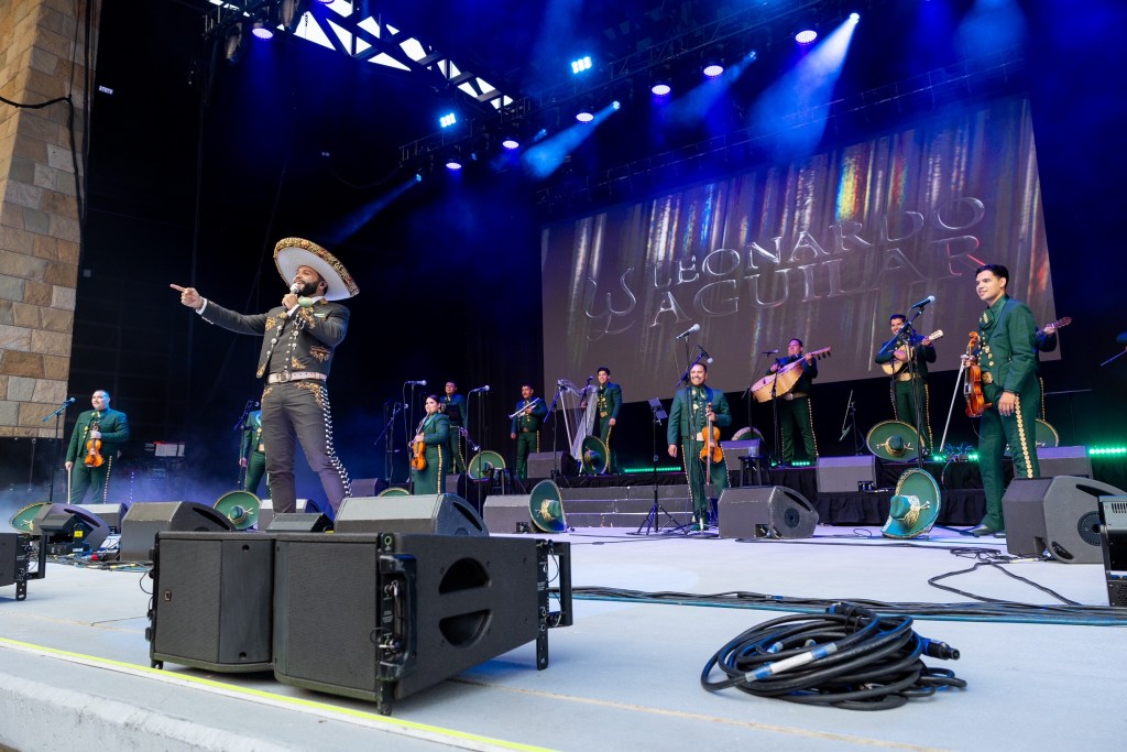 Mariachi Herencia de México stayed on stage to back the mariachi legacy Leonardo Aguilar, son of famous Mexican singer Pepe Aguilar, and grandson of singer-actor Antonio Aguilar. The latest son of “La Dinastía Aguilar” (The Aguilar Dynasty) dazzled with both new and old favorites, performed with the typical mariachi machismo, boastful banter, and passionate anecdotes about family, love, and Mexican pride.