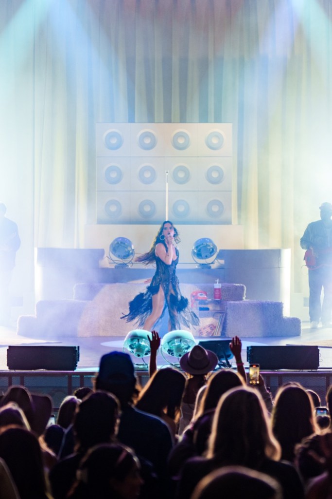 In a sparkly, sexy black gown and heels that emphasized every movement, Morris struck a confident pose as she sauntered center stage and opened the show with “cry in the car” from the spring 2025 album D R E A M S I C L E. The poignant lyrics, “I’m okay, I’m okay, I’m okay, I’m okay/Just stay out, just stay out, just stay out of the way,” set the powerful tone for the night that this is a woman in charge, who’s not to be messed with.