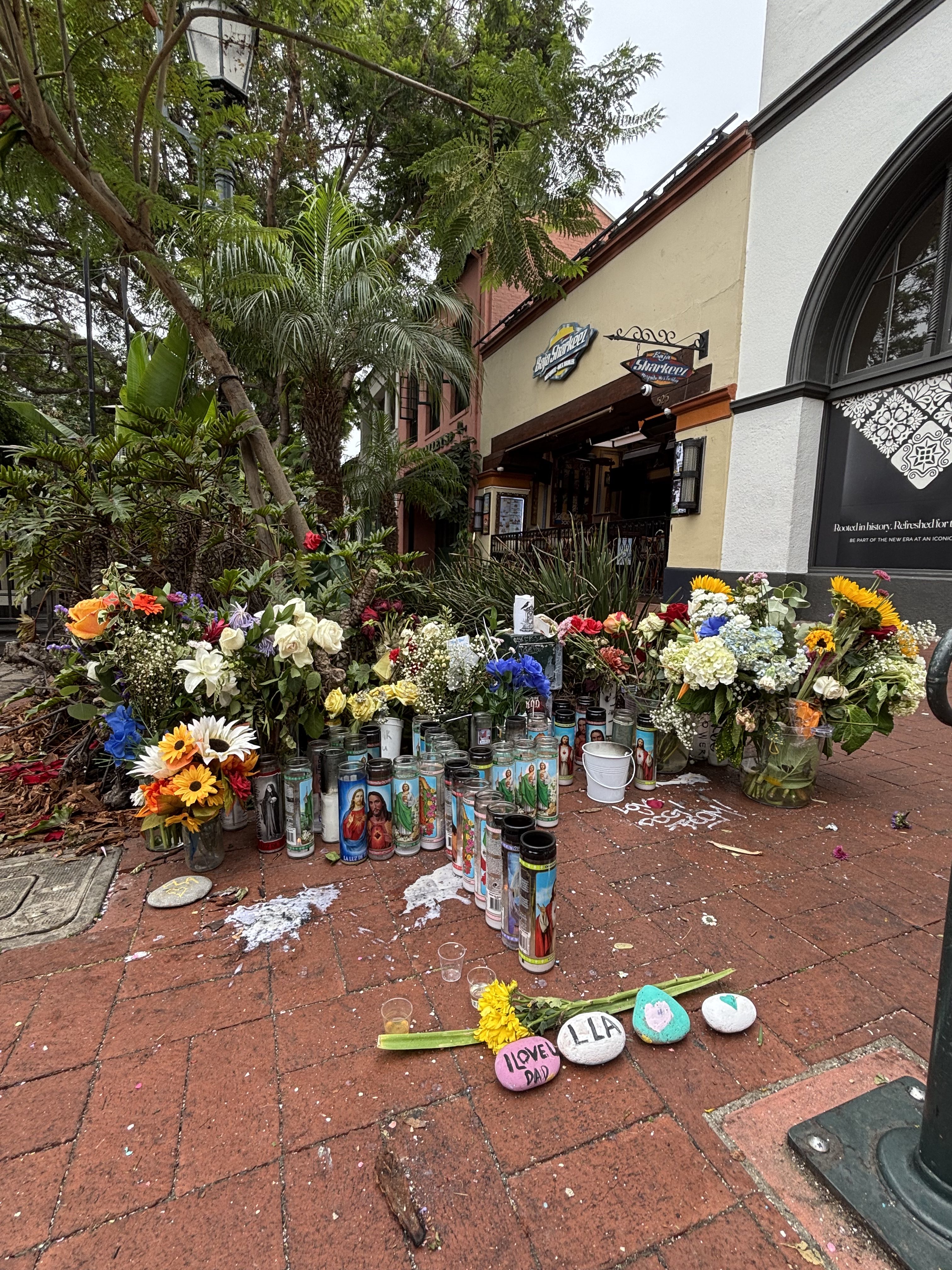 They emphasized that he was not a gang member and was never involved in gang activity, unlike the two men being charged with his murder. A sidewalk memorial featuring flowers, beers, and candles was created for him where the stabbing occurred downtown, next to Baja Sharkeez. However, the family clarified he did not die on the street, but after he was “finally given support and taken to the hospital, where several medical professionals worked tirelessly to revive his life.”
