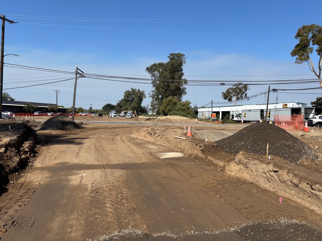 In the industrial part of Goleta, Ekwill Street is beginning to take shape to the west and east of Pine Avenue, along a brushy tree-lined arm of Old San Jose Creek. Due to connect Fairview Avenue to South Kellogg by the end of next year, the dirt outline of the street travels the backside of the UPS truck depot and Northrup Grumman, as jets fly overhead bound for Santa Barbara airport. A roundabout will go where work trucks currently thump down from Ekwill and cross Pine.