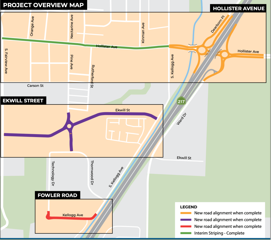 The Hollister Bridge project snarled traffic on the major thoroughfare at its outset in 2024, but that snafu smoothed out after the traffic signal at the 217 was removed from Hollister Avenue. Drivers also seem to have become accustomed to the reduction of the lanes from two to one in a separate restriping project.