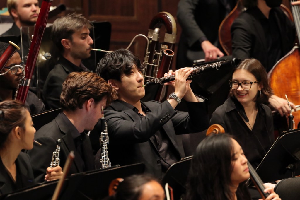 This take on the Third Symphony was given a bold and nuanced rendering by noted guest conductor Miguel Harth-Bedoya (returning to the Academy after a few years since his last appearance) and the technical finesse and finery of the tender young Academy fellows — in more ample numbers than usual — filling the Granada stage, alongside a women’s chorus and, eventually, the young charges of the Sing! chorus.