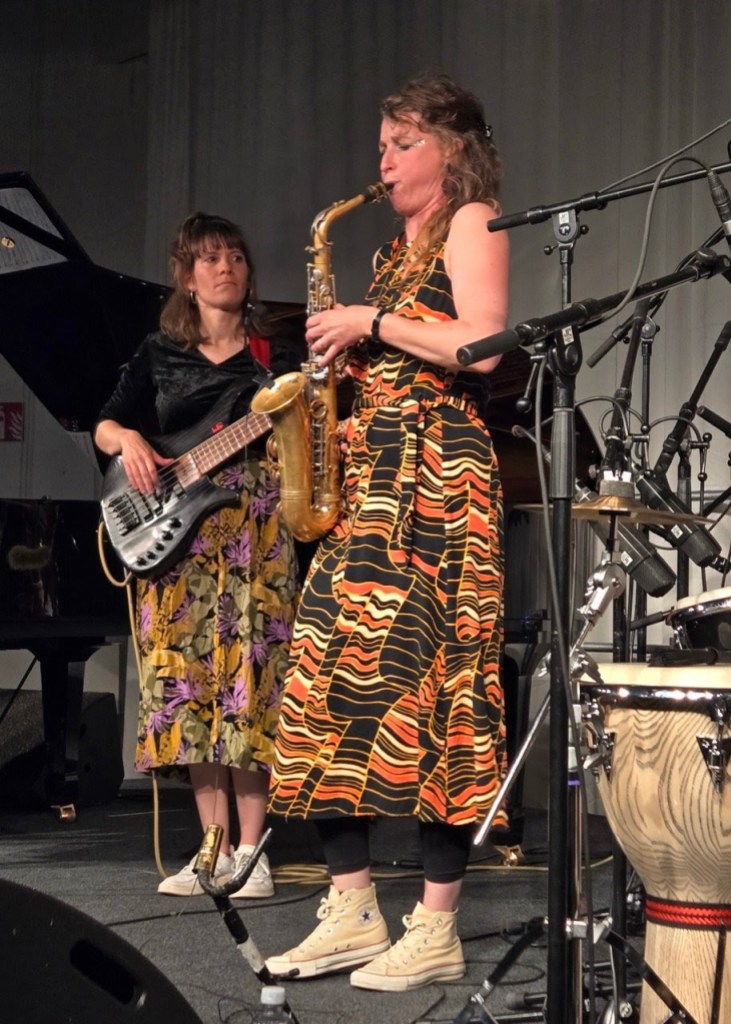 The happy medium and directives of heart-head-butt continued in the Saltsjöbad ballroom — with the commanding veteran jazz/soul singer Catherine Russell and the young and affirmational-spirited dynamo alto saxist from Zurich, Nicole Johänntgen. Musical goods went big time in the main concert venue of the picturesque 19th century Ystads Teater, across the boulevard and train tracks from the Baltic. What better place to take in a dense thicket of jazz and related musical matters for several August days and nights?