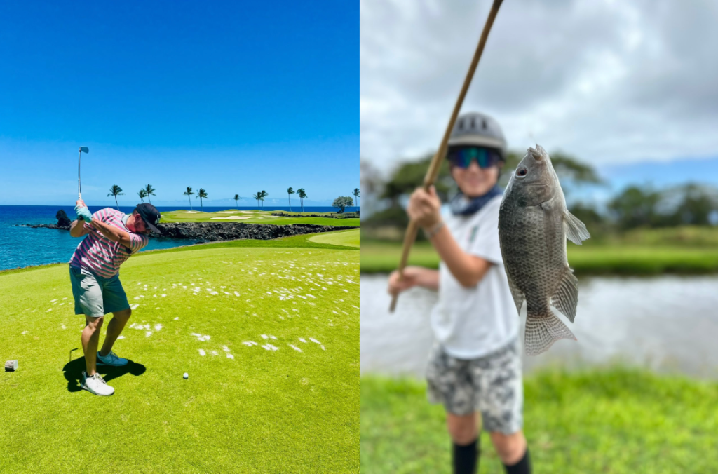 Classic Course @ Mauna Lani: With my son playing for Dos Pueblos High and my brother a much more avid golfer than me, we tend to play a couple times on these trips. This year’s first round was on Mauna Lani’s Francis H. I’i Brown Classic Course, which combines the best holes from the older North Course and the newer South Course. We played the latter a couple days later too, and hit its 17th hole a few more times than that, since our rental sat next to its green.