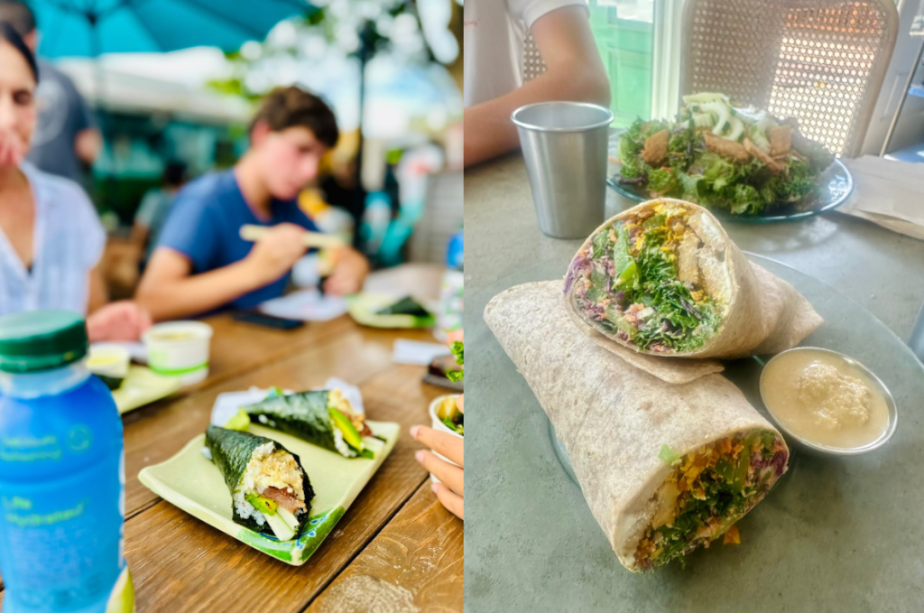 Choice Health Bar: Our last meal out — not counting the green curry, poke, and dumplings we had at my cousin’s house later that night and the airport food to come — was a lunch in Paia. We were hoping to hit the Paia Fish Market, but the line was out the door, so we wound up across the street at Choice Health Bar. After almost two weeks of big meals, both homemade and at restaurants, this natural foods hub was the right choice: tempeh wraps, vegan salads, smoothies, avocado toast, tomato-cashew soup, fresh watermelon juice. We were refreshed, just in time to head home.