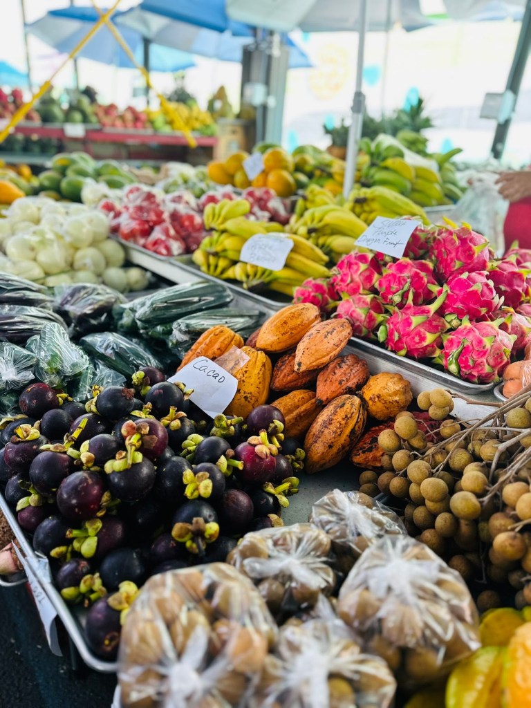 Downtown Hilo: On our way to the Kohala Coast, we stopped by jam-packed Hilo Farmers Market, where I spent about $80 in a very short amount of time on super hot tiny peppers. mangosteen, mango, longan, lychee, two fruits I’d never heard of (and still can’t identify), pineapple butter, chile-marinated chevre, and “normal” things like onions, garlic, ginger, tomatoes, and small potatoes that turned out to be ube. I’d also left my copy of Moby-Dick on my flight, so I found a new (barely used) copy in Big Island BookBuyers.