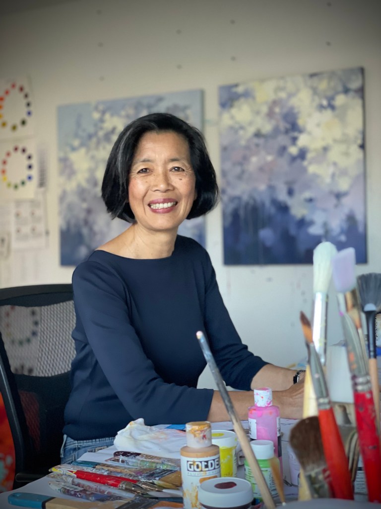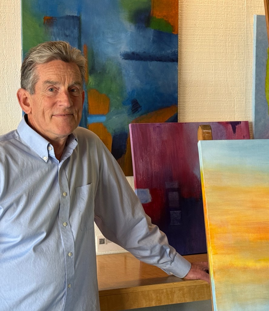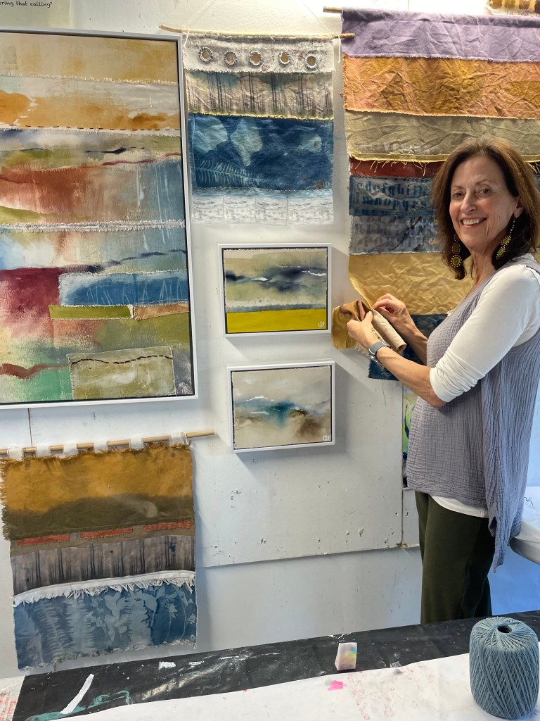 Evenson and her husband, Stan Evenson, moved to Santa Barbara in 2020 amidst the COVID-19 pandemic. “Everything was pretty much shut down, but we started getting involved in creating art very soon after we moved here, and showing our art. I had a great opportunity to have a solo show within the first six months of being here at the Santa Barbara Tennis Club gallery. Then we joined several different organizations, such as Santa Barbara Visual Artists, Santa Barbara Studio Artists, and Abstract Arts Collective. Our journey has been really wonderful since we landed here five years ago this month. We have found the art community to be extremely welcoming, non-competitive, and encouraging,” said Evenson.