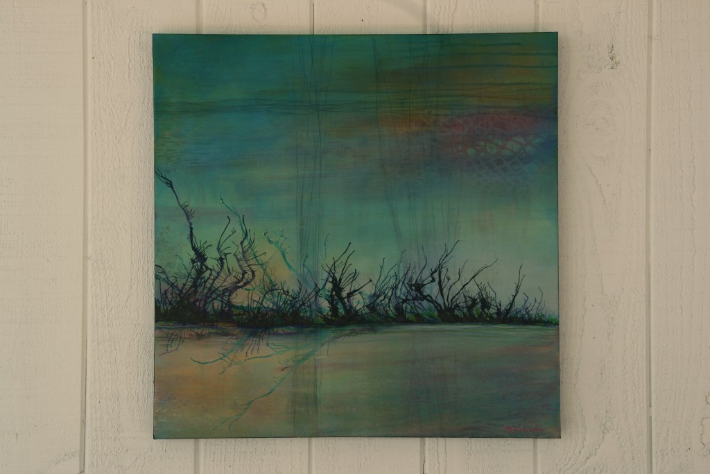 Both Evenson and her husband are showcasing their art in their studio and home in the upcoming Studio Tours. “When people come to our studio, they get a two-for-one, and that’s really exciting, and I think it’s a good draw for people. We both decided to paint really large paintings this year so that we capture people’s imagination and attention. … I really like it when people ask questions about our art. I like to be able to speak to the art or ask a question back, like: What does it mean to you? What do you see in it? What does it make you think of or remember? I want artwork to be evocative, but mostly we just want to have fun,” she said.
