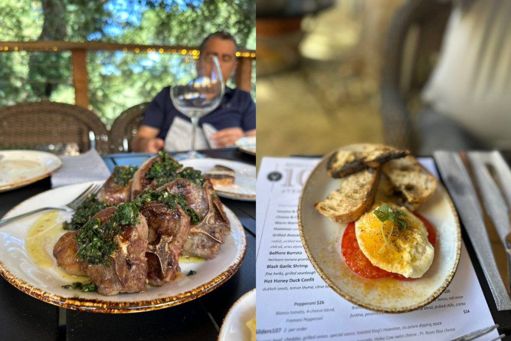 From left: 107 Bistro’s lamb chops; 107 Bistro’s Belfiore burrata