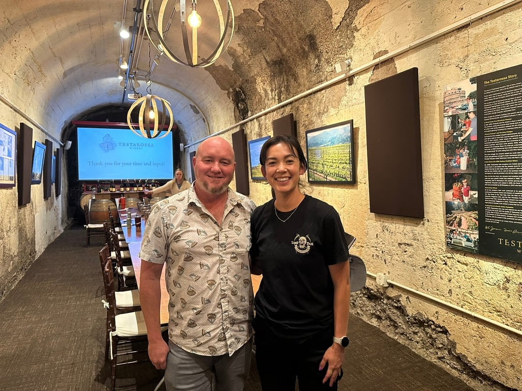 Matt and Holly Kimura-Carlin, who used to babysit his kids and now works at Testarossa Winery.