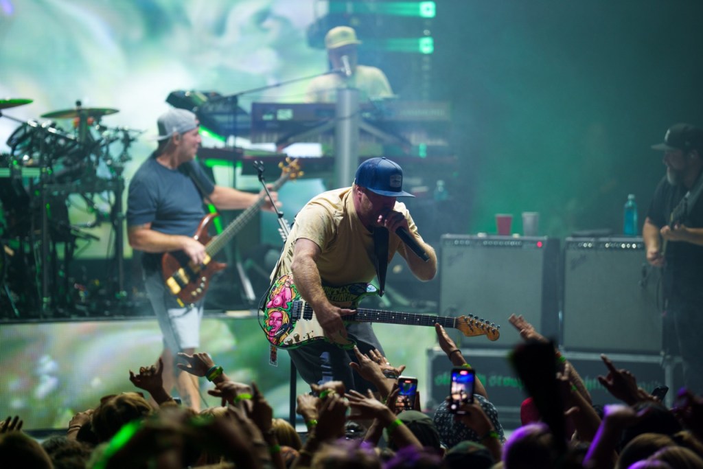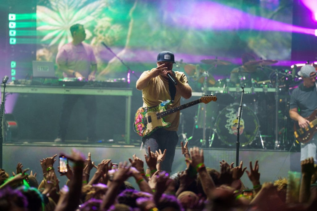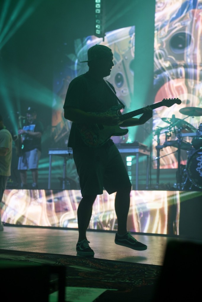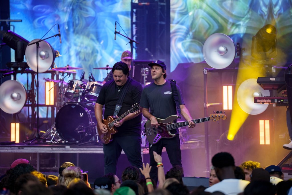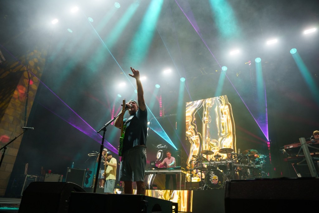 The legendary duo of Miles Doughty and Kyle McDonald of Slightly Stoopid dove right into their set performing popular songs like “Niceness,” “2 AM,” and “This Joint.” Doughty and McDonald showed off their musical prowess, sharing playing duties with guitar and bass. Right behind the duo was a full band propped up high on a secondary platform above featuring horns, percussion, and keyboards. They presented a multi-faceted sound that rang out over the Bowl.