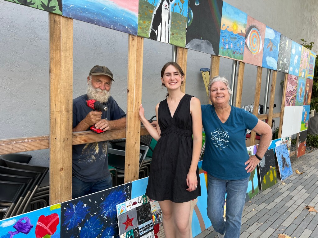 “Amaya, age 14, collaged the Coastal View News onto her piece, painted blue over it, and then painted butterflies to represent migrants calling to support the migrants in our community. I was so moved by reading about that,” Cohen said. “Emma, age 13, is another one; she’s finally found her home in the theater and created a piece about that. She spent so much effort painting that panel with different scenes of the theater. I think that’s a beautiful expression of community that not everybody finds, and that she found it at 13 is wonderful. Another one I thought was interesting was titled ‘Our Beach,’ by Nolan, age 14. It’s a beautiful painting of the beach. This young man explained that this is the beach his family goes to. For him, his family is his community, and that’s a beautiful expression of community as well.”