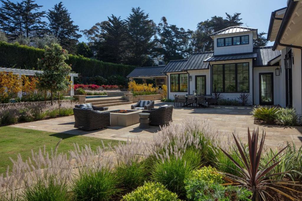 Montecito Modern Farmhouse: For architect Tom Meaney, a vacant one-and-a-half-acre parcel provided a blank canvas for this farmhouse-style single-family residence and detached garage. Centered around the pool and pavilion — with hardscaping by Custom Hardscapes and Pat Scott Masonry and landscaping by Earthform Design — the back patio connects seamlessly inside. On a single level across 4,800 square feet, four bedrooms and an office surround living and dining spaces and an open kitchen with a clerestory. Photo by Holly Lepere.