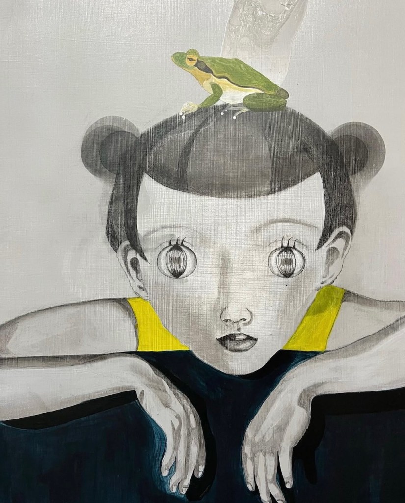 Kaoru Mansour is originally from Hyogo Prefecture, Japan, but has been based in Southern California since 1986. Her work radiates warmth and a belief in kindness as a connective force, offering viewers moments of stillness and gentle human connection.