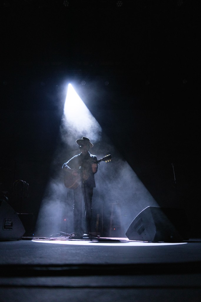 Gregory’s voice was its own instrument — it had great depth, constant coarseness, always controlled. Sometimes it rose above the guitars, the banjo, the bowed violin, and sometimes it sank into them. It felt like he hid inside the music. He played with the darkness, the light, the smoke. He lingered within it. His wide-brimmed fedora shadowed his face so you never really saw it — just a man cloaked in night, fingerpicking his guitar while a million rays of gold light shone out behind him.