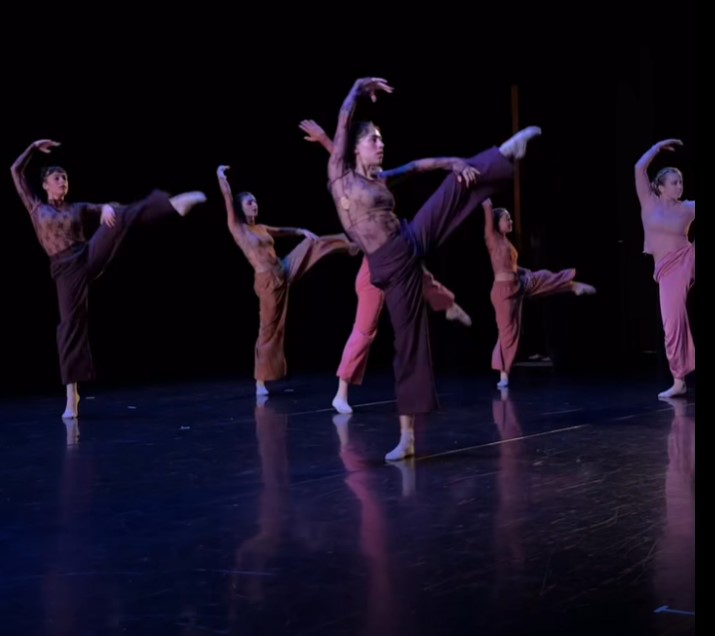 After the meeting of the two Malenas, Arianna Hartanov, one of the most multi-faceted, dramatic dancers in Santa Barbara (see my reviews here and here), danced a solo. Alone on stage, Hartanov brought a different energy to the story, neither in a couple nor in a group, conveying a sense of urgency to Malena’s struggle. I noticed a theme that wove through her solo: a high extension, followed by a contraction and a collapse to the floor, rising again in one sweeping movement, like waves breaking and rising again. What was the significance of that sequence of movements in the life of Malena? Was it reaching and yearning, but afraid to fail? Or perhaps symbolizing a metamorphosis, the death of the old self, signaling the rebirth of Malena?