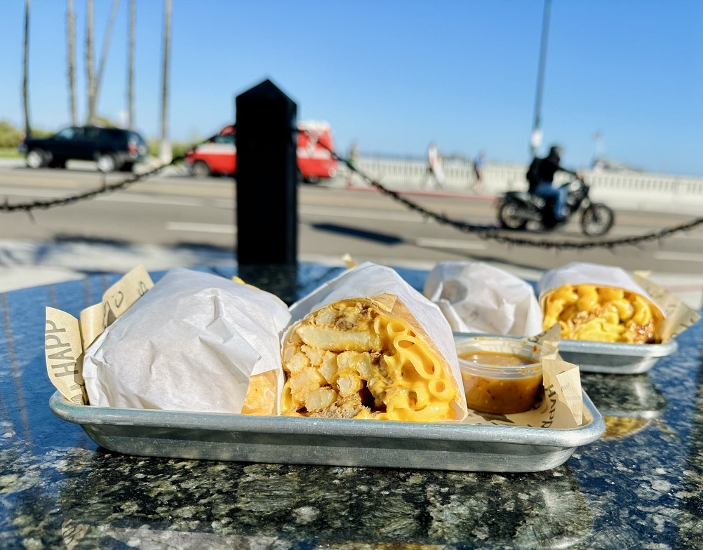 So, in went the mac and cheese, providing a rich ’n’ creamy accompaniment to both her beloved breakfast burrito and the more midday-oriented California burrito. The breakfast version — enjoy with their $1 Handlebar coffee! — also includes the usual scrambled eggs, grilled potatoes, and choice of sausage, pork belly, or bacon, while the California integrates slow-simmered carnitas and, as the name implies, French fries with the gooey noodles.