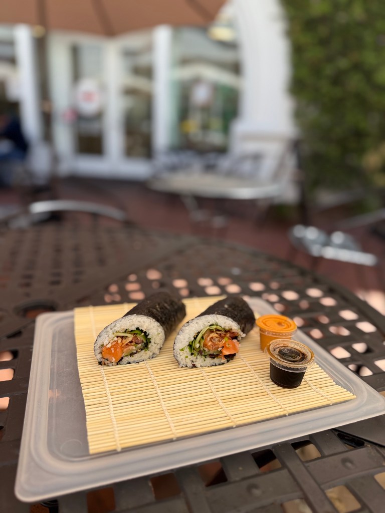 Their poke burrito is rolled in nori; packed with sushi rice, fresh ahi tuna and salmon, crunchy cucumbers, mixed greens, sweet onions, and scallions; and finished with crispy sesame seeds. Dip it in the house-made sriracha or citrus ponzu for an extra punch, and the poke burrito eats like an oversized maki roll — light, refreshing, and totally different, in the best way.