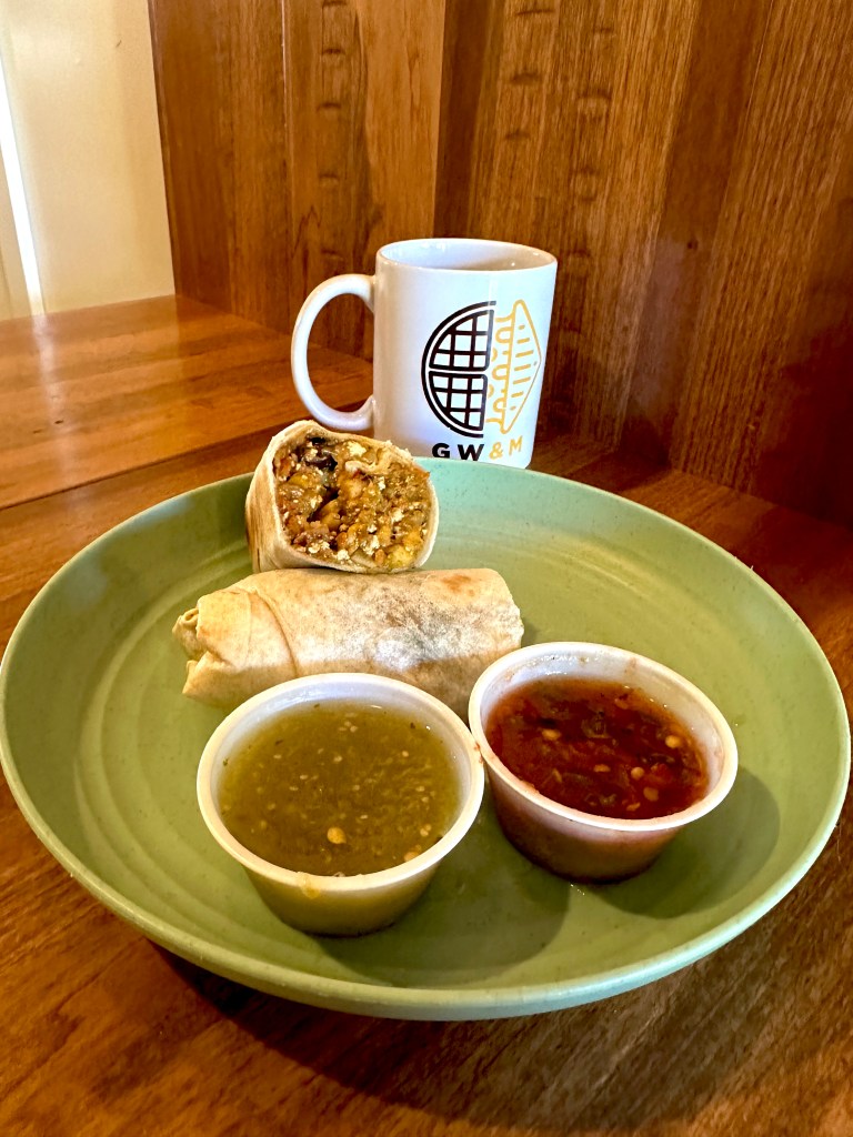 Goodland Waffles & Melts owner Bobby Georges says the vegan breakfast burrito has been on the menu for about a year, giving one more brunch-all-day option alongside favorites like waffle-cado toast and The Locale, a seven-cheese blend melt on Riviera Bread Company beer-to-bread sourdough (which uses grain from Goodland Waffles’ neighbors, Draughtsmen).