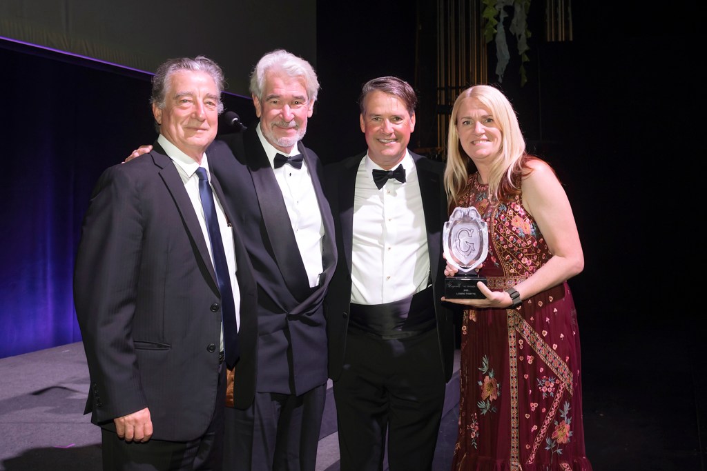 Lobero Theatre Foundation boardmember Amy MacLeod introduced the award for the Lobero Theatre, specifically thanking recently retired executive director David Asbell for guiding the Lobero with vision and passion during his 29-year tenure. Firestone embraced the Lobero as a sister theater to the Granada, noting it as an important contributor in making downtown Santa Barbara a remarkable center for the arts.