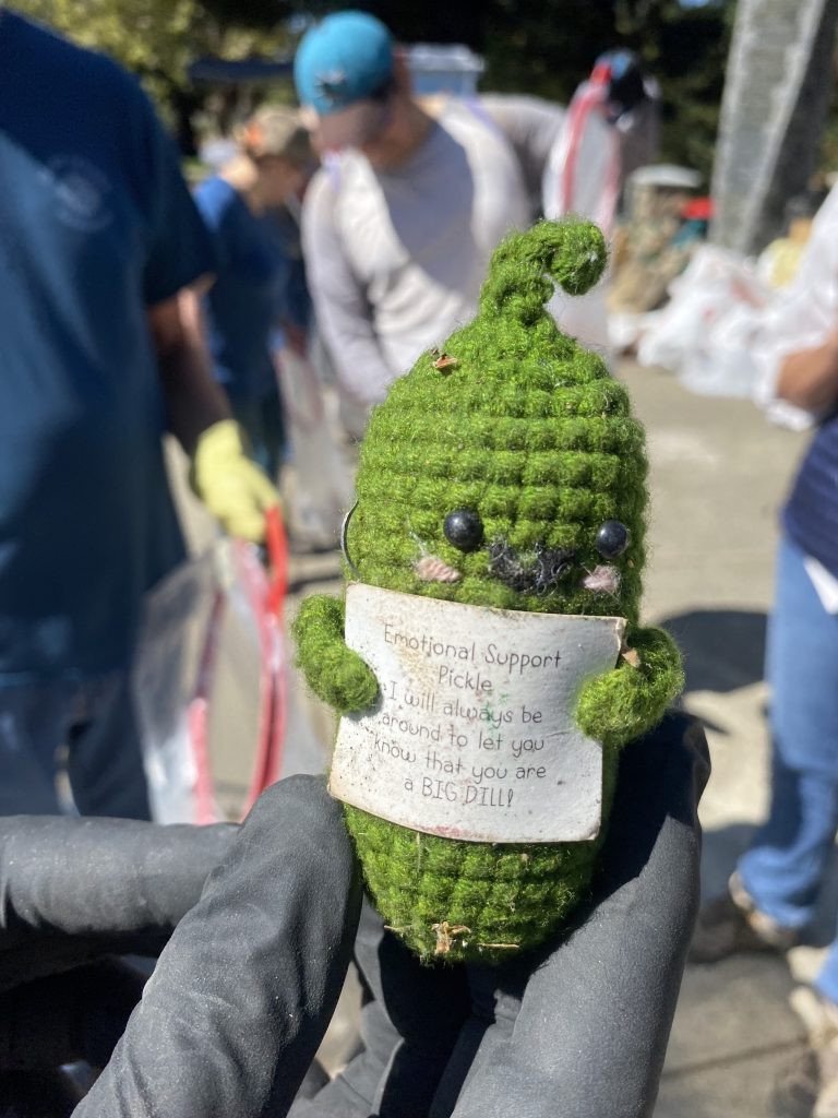 A lucky volunteer at a site in Sonoma County won the state’s 2025 Most Unusual Item contest with an “emotional support pickle.”